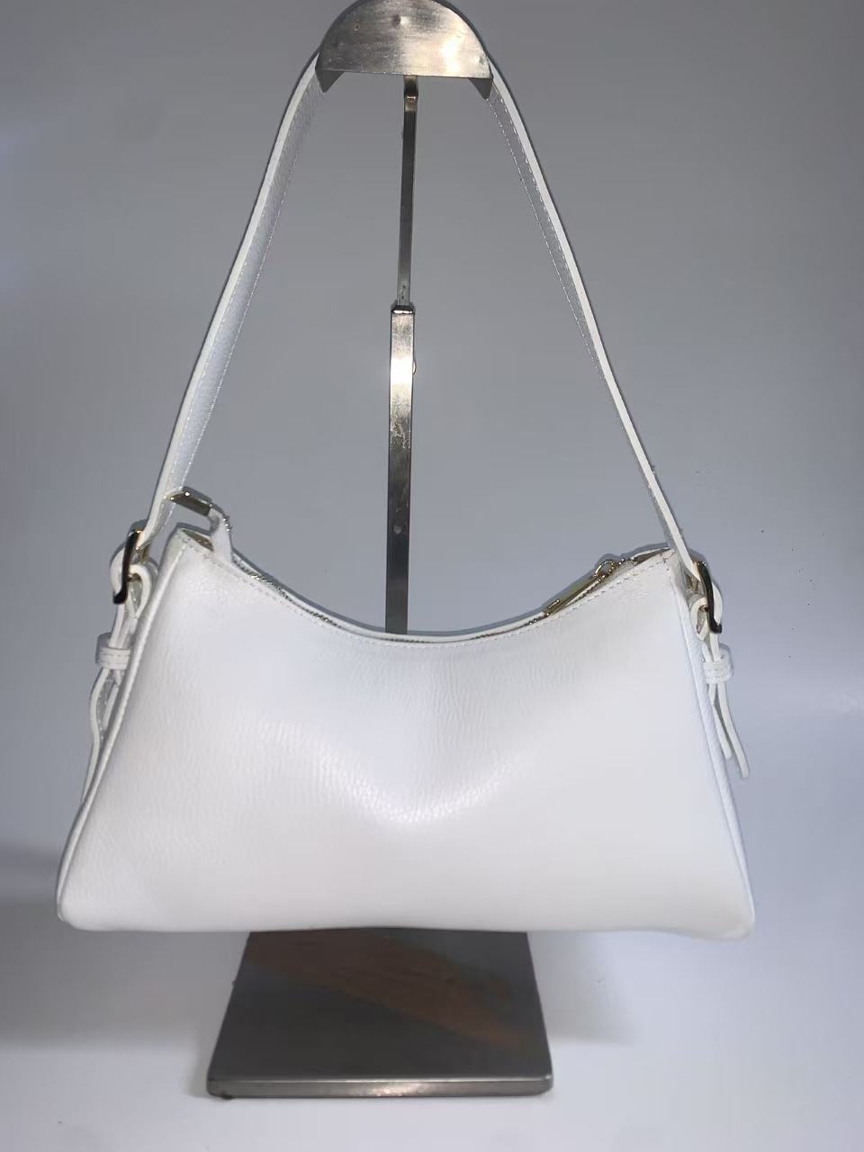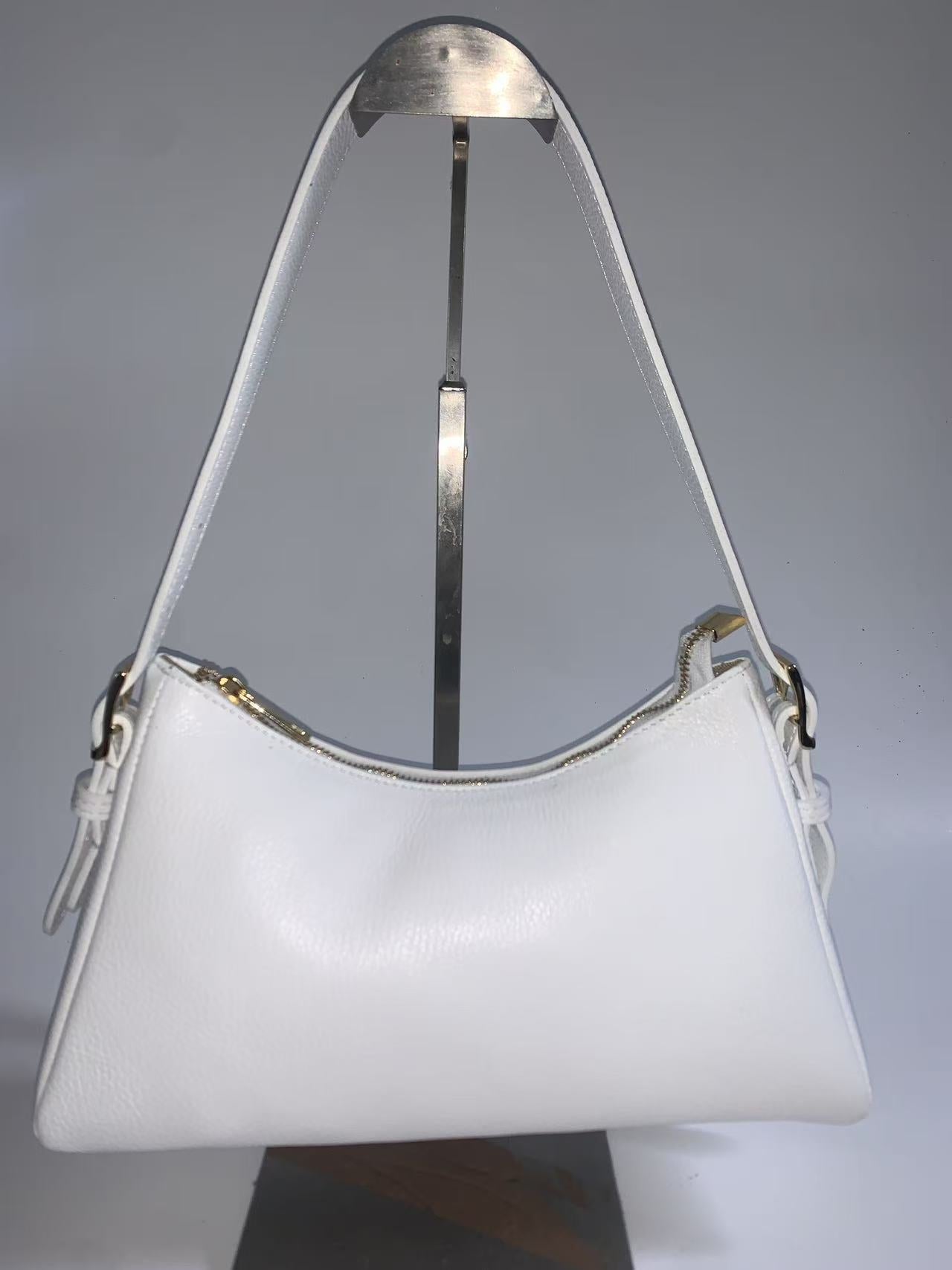 elegante e versatile borsa a spalla realizzata in similpelle liscia, con manico a spalla e tracolla removibile, con inserto in catena. Decorata con logo frontale in metallo, comparto con cerniera e interno foderato, completo di tasche.